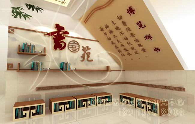 利用樓梯角打造獨(dú)立的讀書空間,美觀性與實(shí)用性相結(jié)合,營(yíng)造良好的閱讀氛圍,啟迪學(xué)生養(yǎng)成愛讀書、多讀書的習(xí)慣。樓梯下方的墻面以“博覽群書”作為文化主題,展示與讀書立志相關(guān)的名言警句,給予學(xué)生們精神力量。