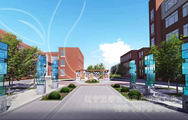 廣場(chǎng)以“樹(shù)人”為主題,同時(shí)融入燈塔等地域元素,放置有燈柱、校訓(xùn)石、廊架等景觀,整體風(fēng)格簡(jiǎn)潔、大氣。