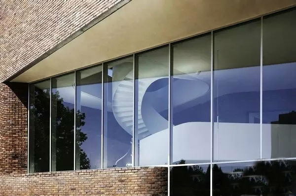 正方形窗戶大小各不相同,排列也不對稱。它們?yōu)榻淌規(guī)砹俗匀还饩€,也讓學(xué)生們能一覽城市景色。在場地南部,室外運動設(shè)施和體育館各司其職。因為在北歐的許多地區(qū),磚塊是唯一的立面材料,所以建筑師摒棄了鋒利的棱角,希望通過圓角設(shè)計使這所高中教學(xué)樓看起來柔和一些。磚塊外表有三層抹灰,以此與建筑的三個樓層呼應(yīng),這種設(shè)計也是為了創(chuàng)造開放空間,并凸顯學(xué)生入口的位置。